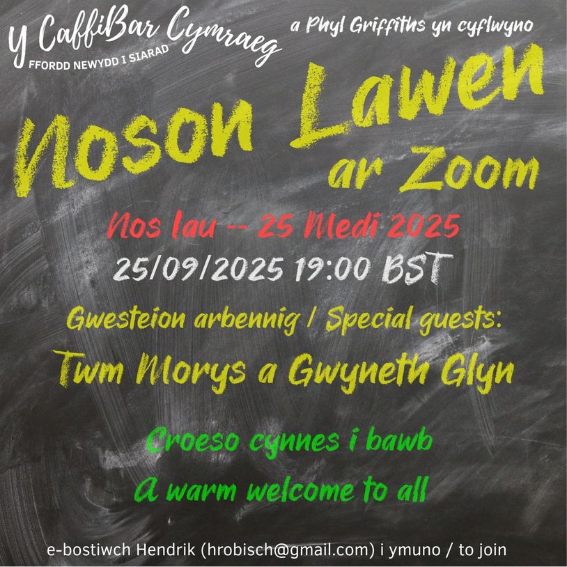- Bydd y Noson Lawen nesaf ar y 25ain Medi 2025